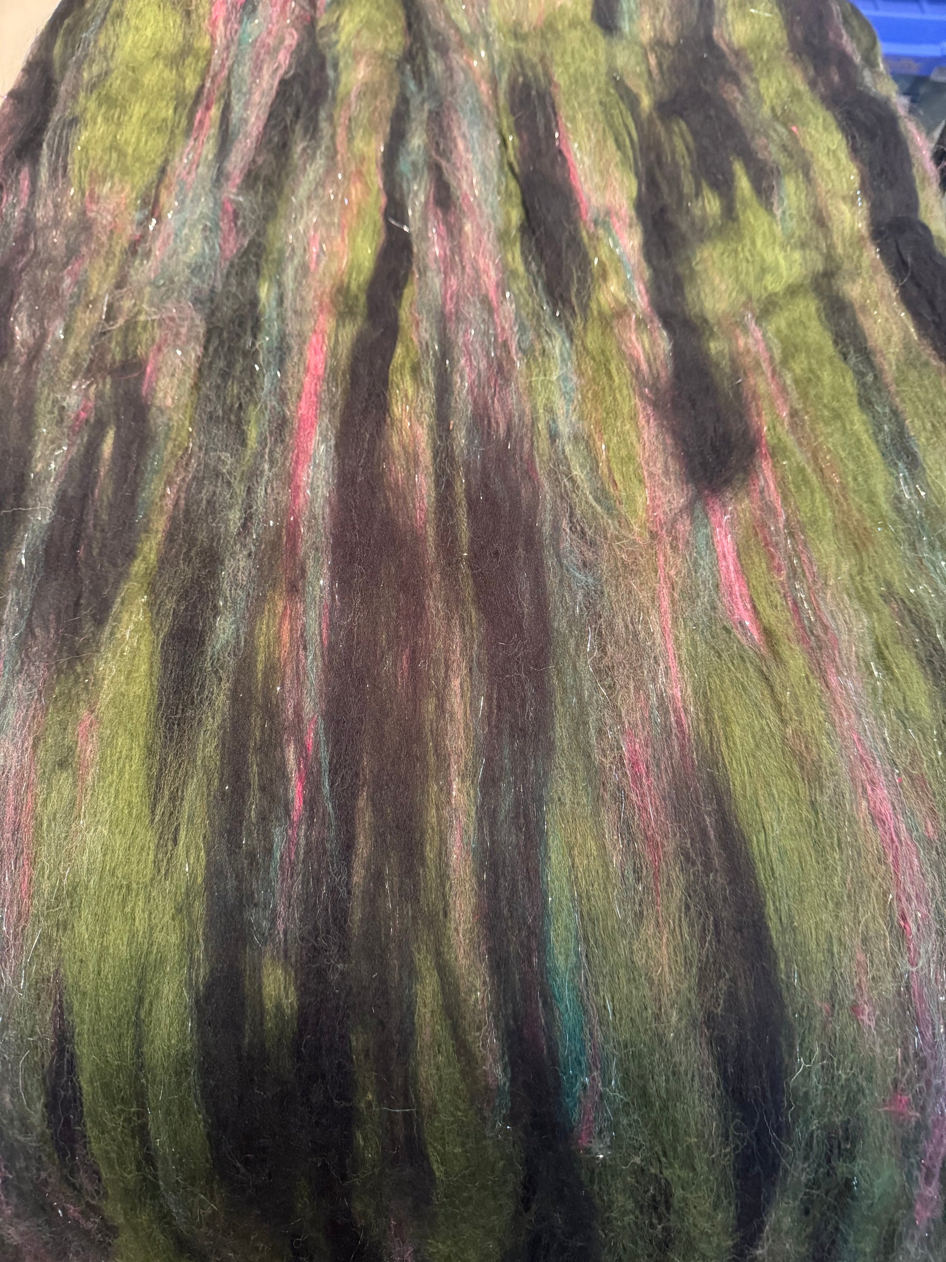 Please note: All of my batts have several pictures taken so you can view the various colors of fiber that are blended throughout the batt; most silks have been added to the batt in the center and on the top layer.